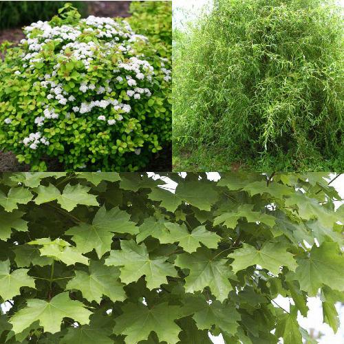 - Продолжительное декоративное воздействие: весной цветение ивы и спиреи, осеннее окрашивание клена.
